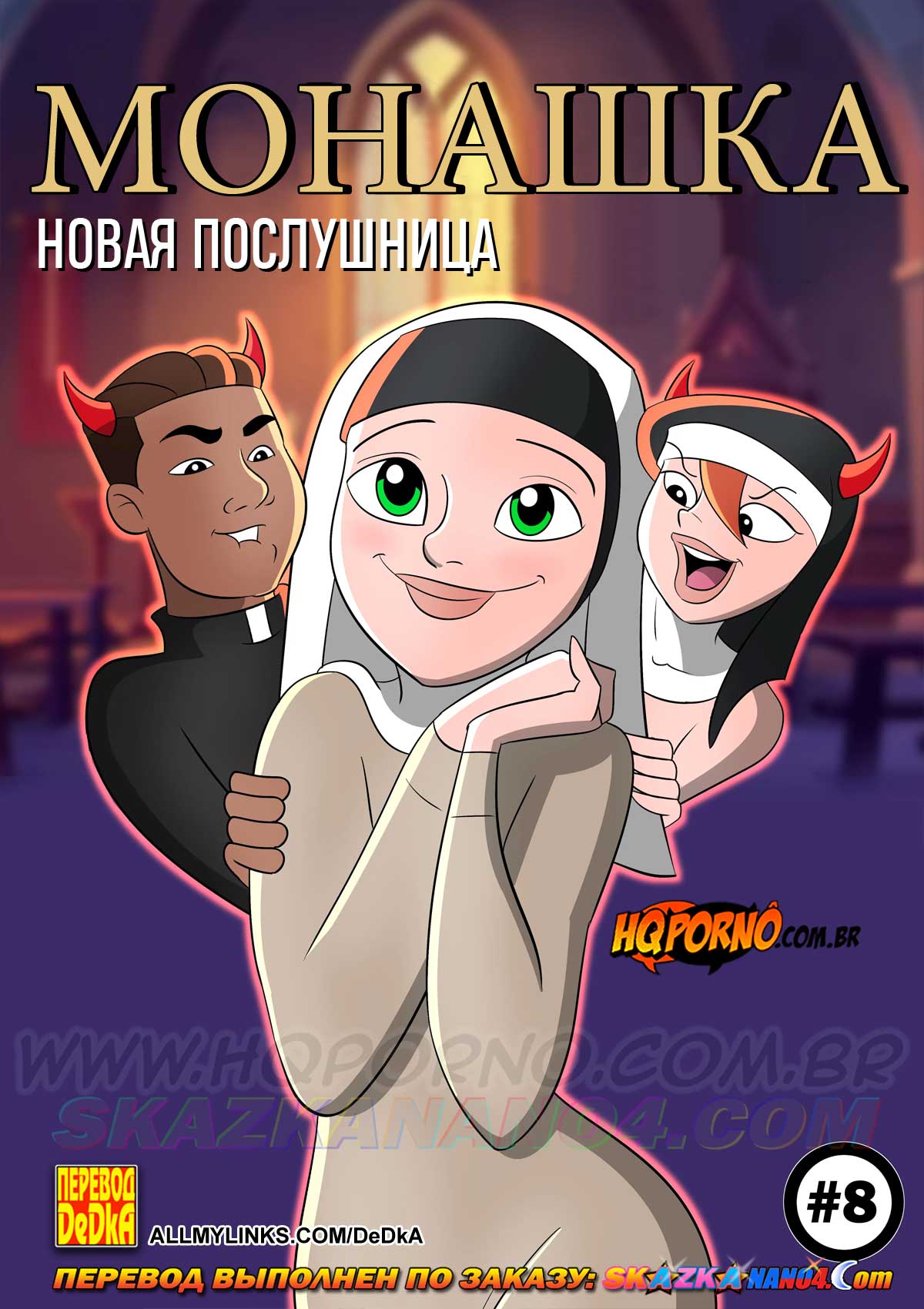 Читать далее 10 Июл 2025 9504 0Порно комикс «Монашка. Часть 8. Новая послушница.»